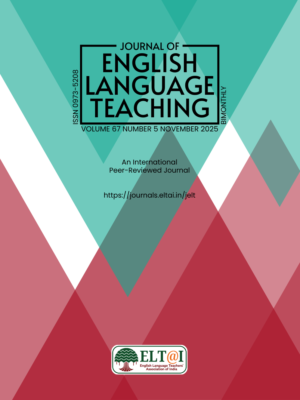 Vol. 67 No. 6 (2025)The November–December 2025 issue of the Journal of English Language Teaching explores contemporary shifts in ELT by examining multilingual realities, multimodal pedagogies, language policy, learner affect, and digital accessibility. The articles collectively challenge monolingual and print-centric assumptions that continue to shape English education. Through studies on linguistic landscapes, translanguaging, multimodal literacy, learner anxiety and motivation, grammar learning, and inclusive online learning, this issue foregrounds equity, learner agency, and context-sensitive pedagogy. Together, the contributions invite educators and policymakers to reimagine English language teaching in ways that are inclusive, responsive, and grounded in learners’ lived linguistic experiences.